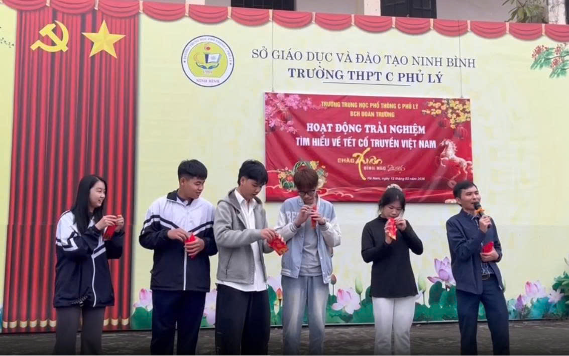 Trong không khí rộn ràng của những ngày đầu xuân năm mới, nhằm giúp học sinh hiểu sâu sắc hơn về giá trị văn hóa truyền thống dân tộc. Ngày 12 tháng 2 năm 2026, Trường THPT C Phủ Lý đã tổ chức chương trình ngoại khóa – hoạt động trải nghiệm với chủ đề: “TÌM HIỂU VỀ TẾT CỔ TRUYỀN VIỆT NAM – CHÀO XUÂN BÍNH NGỌ 2026”